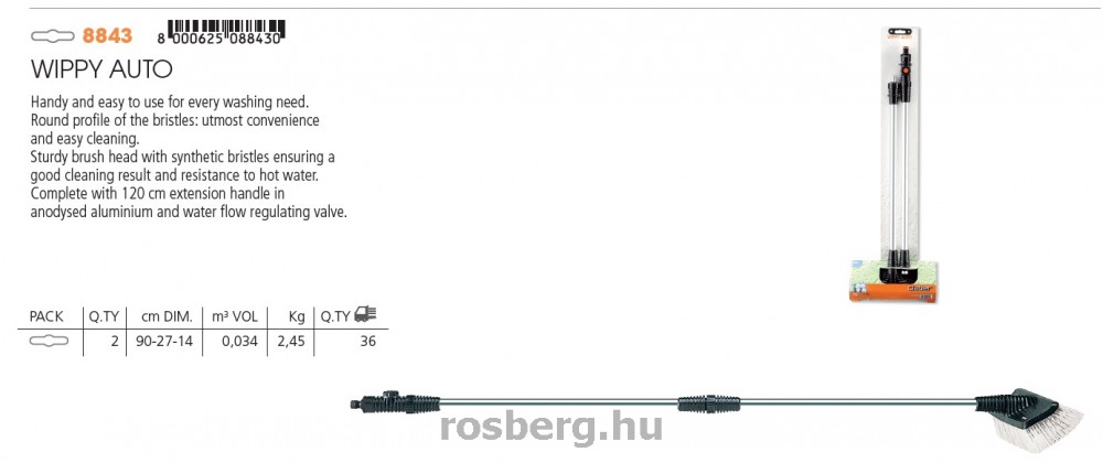 CLABER autómosó kefe 8843 wippy auto 120 cm nyél