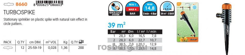 CLABER locsoló 8660 turbó leszúrható 40 m2