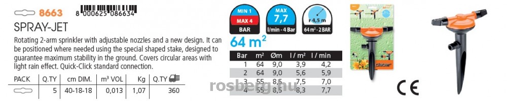 CLABER locsoló 8663 spray-jet leszúrható 78 m2