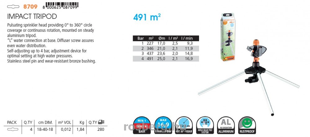 CLABER locsoló 8709 szakaszos három lábú 491 m2