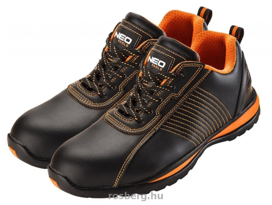 A NEO munkavédelmi félcipő (kat. sz. 82-101, méret 40) alapvető védőeszköz a munkavégzéshez. Felsőrésze könnyen ápolható bőrből készül. Csúszásmentesített talpa gumival borított EVA hab, ami kiváló kényelmet és hatékony rezgéscsillapítással járul hozzá a biztonsághoz és a viselési komforthoz. A műanyaggal megerősített sarok és az acél orrmerevítő véd a sérülések ellen. A lábbeli belső részének puha kikészítésének köszönhetően magas fokú a munkavégzés kényelme.