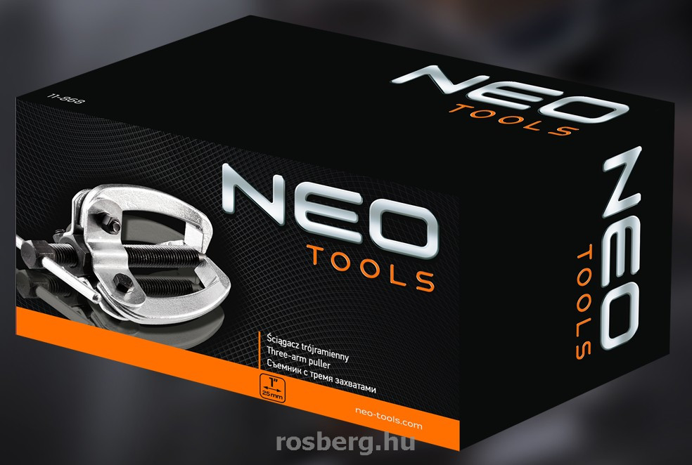 A NEO 1" háromkörmös csapágylehúzó kiváló minőségű, a szerszámnak hosszú élettartamot biztosító króm-vanádium acélból készül. Mérete 1". Elsősorban csapágyak levételére szolgál. A karok egy oldalon rendelkeznek körömmel, elforgatásához tüskével rendelkezik. A NEO márka a professzionális igényeket is kielégíti.