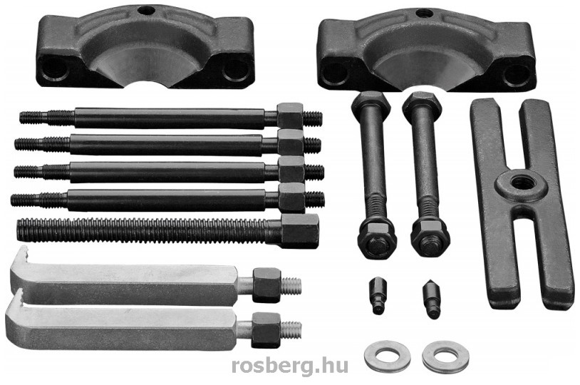 NEO kétkörmös csapágylehúzó kengyel és elválasztó, a szett a közös tengelyekre szerelt elemek, pl. csapágyak, lendkerekek, görgők elválasztására szolgáló készlet Kiváló minőségű, a szerszámnak hosszú élettartamot biztosító acélból készül. A termék kiváló minőségét és megbízhatóságát bizonyítja a TÜV Rheinland tanúsítvány. A NEO márka a professzionális igényeket is kielégíti.