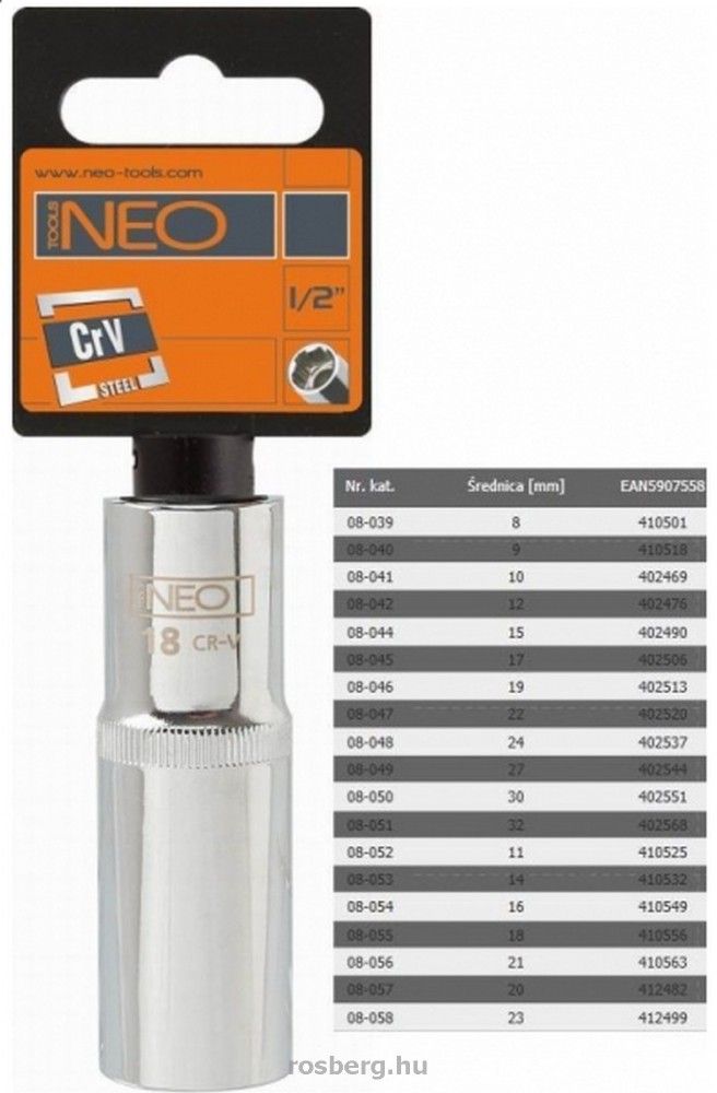 NEO dugókulcs 08-058 23mm 1/2 hosszú 6P