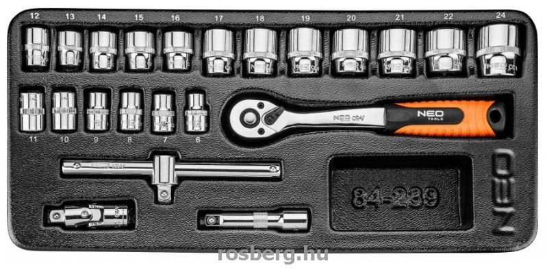 NEO dugókulcs készlet, 6-24 mm 84-239 3/8", 22 részes
