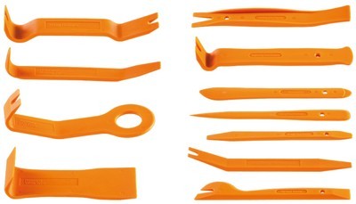 A NEO kárpitleszedő készlet elemei kiváló minőségű, kemény poliamidból készülnek. Lehetővé teszi a gépkocsik belső terében a kárpitok és díszlécek leszerelését a puha elemek és a kárpitrögzítő patentek megsérülésének kockázata nélkül. A készletben 11 db különböző alakú, a nehezen hozzáférhető helyeken is használható kárpitleszedő kapott helyet. A készlet praktikus tokba van csomagolva. Minden autószerelő és autórádió szerelő műhelyben hasznos. A NEO márka a professzionális igényeket is kielégíti.