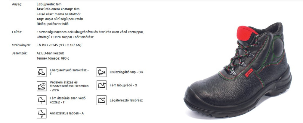 - Munkavédelmi cipő, védőlábbelik