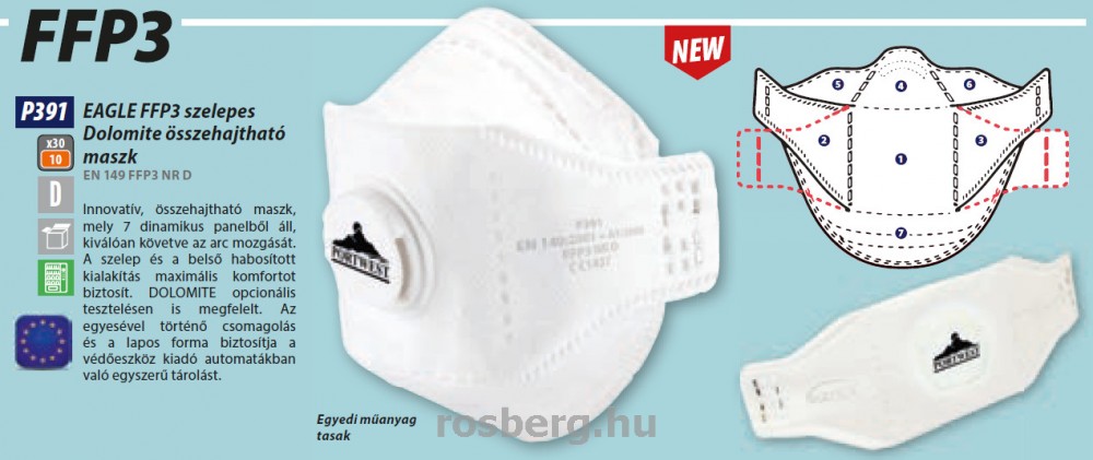 Megnevezése: EAGLE FFP3 szelepes Dolomite összehajtható maszk (10 db)