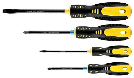 A TOPEX csavarhúzókészlet kiválóan alkalmas szerelési, barkácsolási munkákhoz . A négy csavarhúzó mindegyikének hegye nagy ellenállóképességű, a szerszámnak hosszú élettartamot biztosító króm-vanádium acélból készült. A mágneses hegy megkönnyíti a szerszámmal végzett munkát Az ergonómikus, csúszásmentes anyaggal bevont műanyag markolat biztosítja a kényelmet és a biztonságot a munkavégzés során. A TOPEX márka ezermestereknek készül.